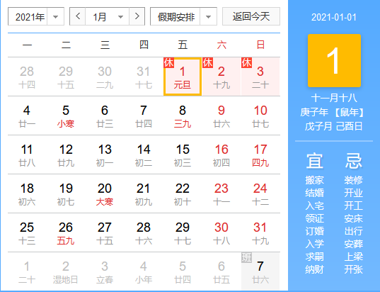 2021年元旦放假安排!
